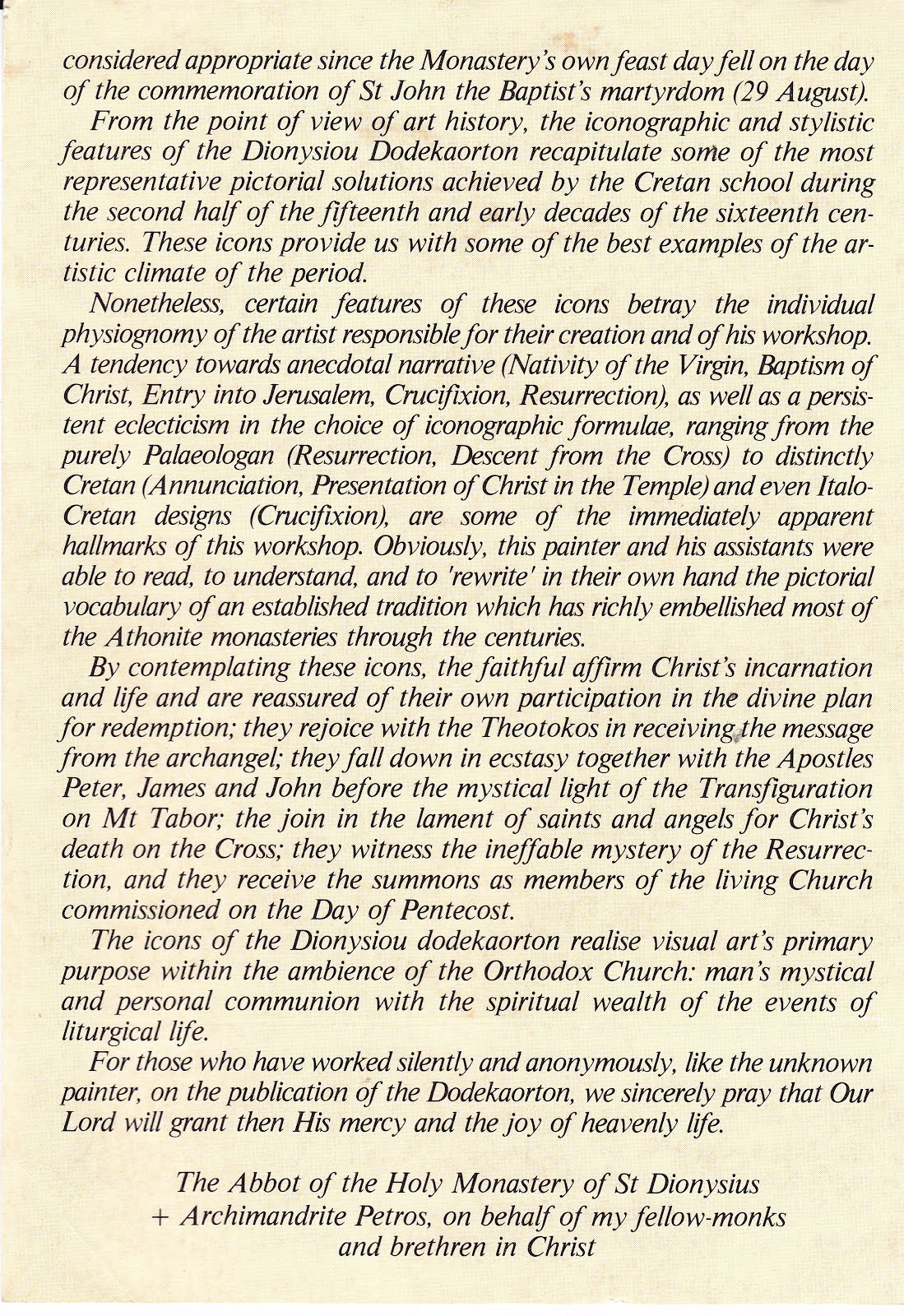 Some years back two of my fellow Capuchins and I made a pilgrimage to Mount Athos, the heart of Orthodoxy. We visited the monasteries of Xenophontos, Gregoriou, Dionysiou, Paulou, and the skete of Agia Anna. It is a place to which we would like to return one day. While there and in Thessaloniki I collected as many prints of icons as I could and among my collection there are packs of postcards featuring icons.
